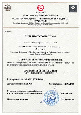 ООО «Волстар+» серийно изготавливает компенсирующие устройства для контактной сети железных дорог, отвечающие требованиям ГОСТ 12393-2013 «Арматура контактной сети для электрифицированных железных дорог»:
